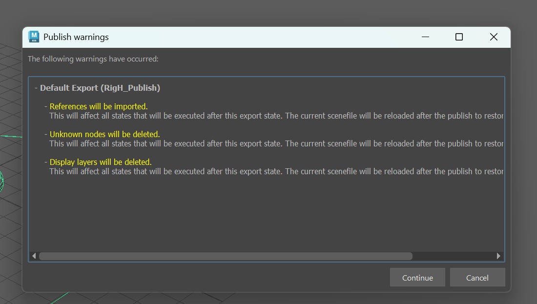 Vous devriez voir un message de succès qui s'affiche. Le rig est maintenant publié sous le nom "RigL_Publish".