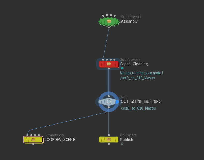 Cependant, aucun asset n'est importé par défaut par l'algorithme de création de scène. Il est de la responsabilité de l'artiste de sélectionner et d'importer les éléments nécessaires pour composer l'environnement du shot selon les besoins de la séquence.