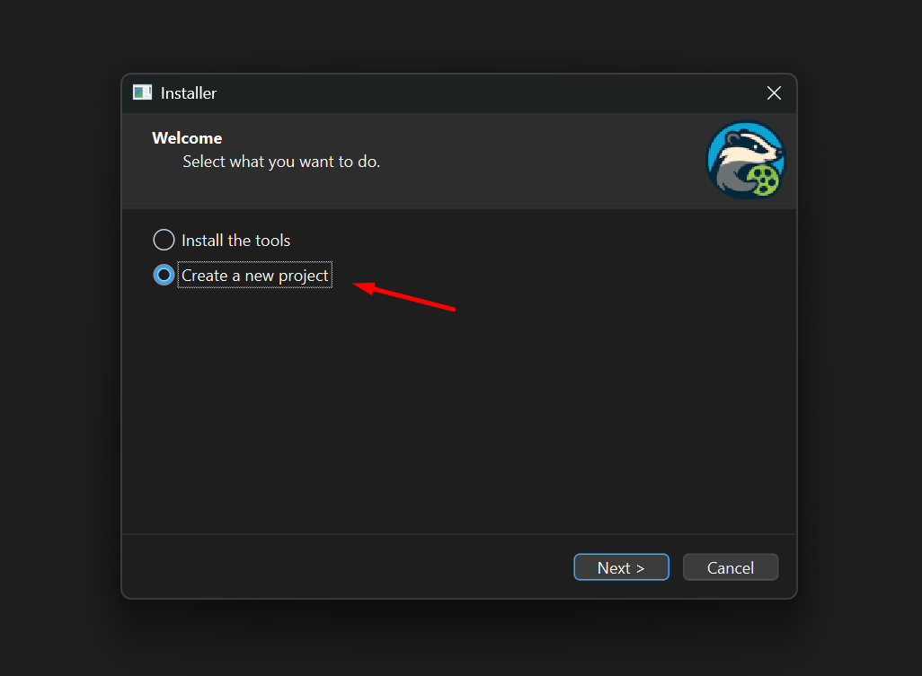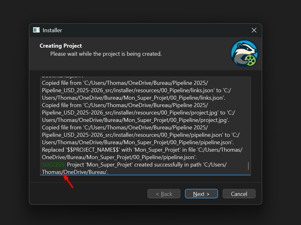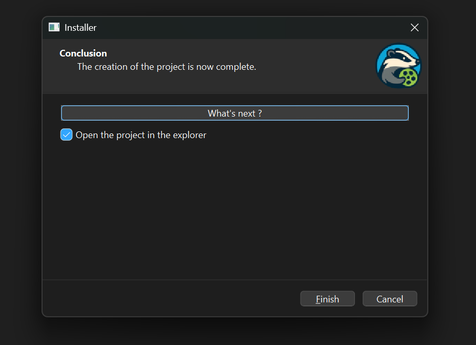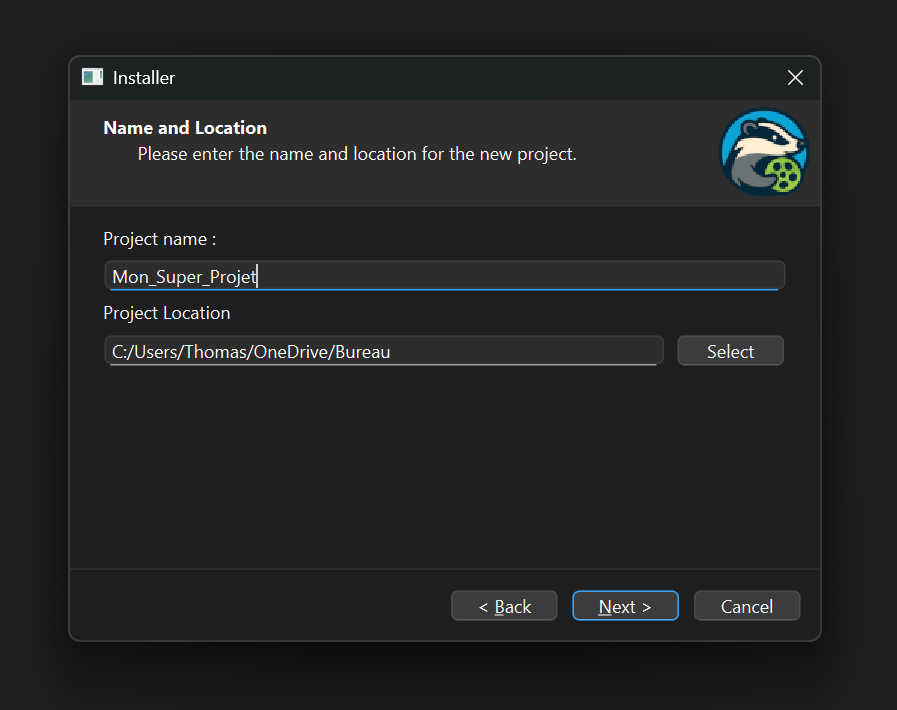 Avec cette option, l'installeur va créer un nouveau projet en copiant les fichiers nécessaires depuis le repository. Voici les étapes à suivre :