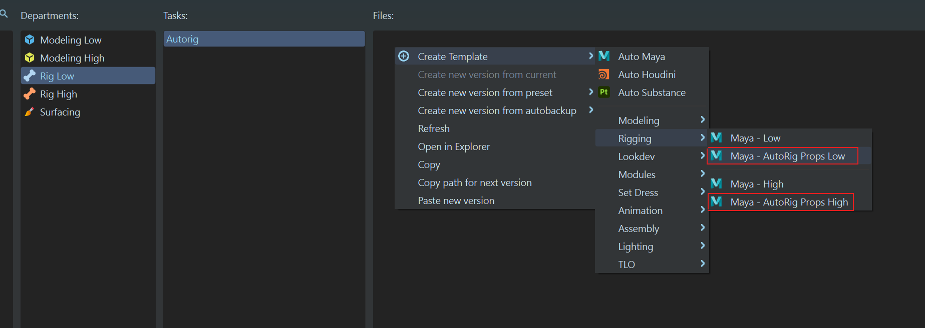 Il est possible de créer des rigs pour le département RigLow et RigHigh.