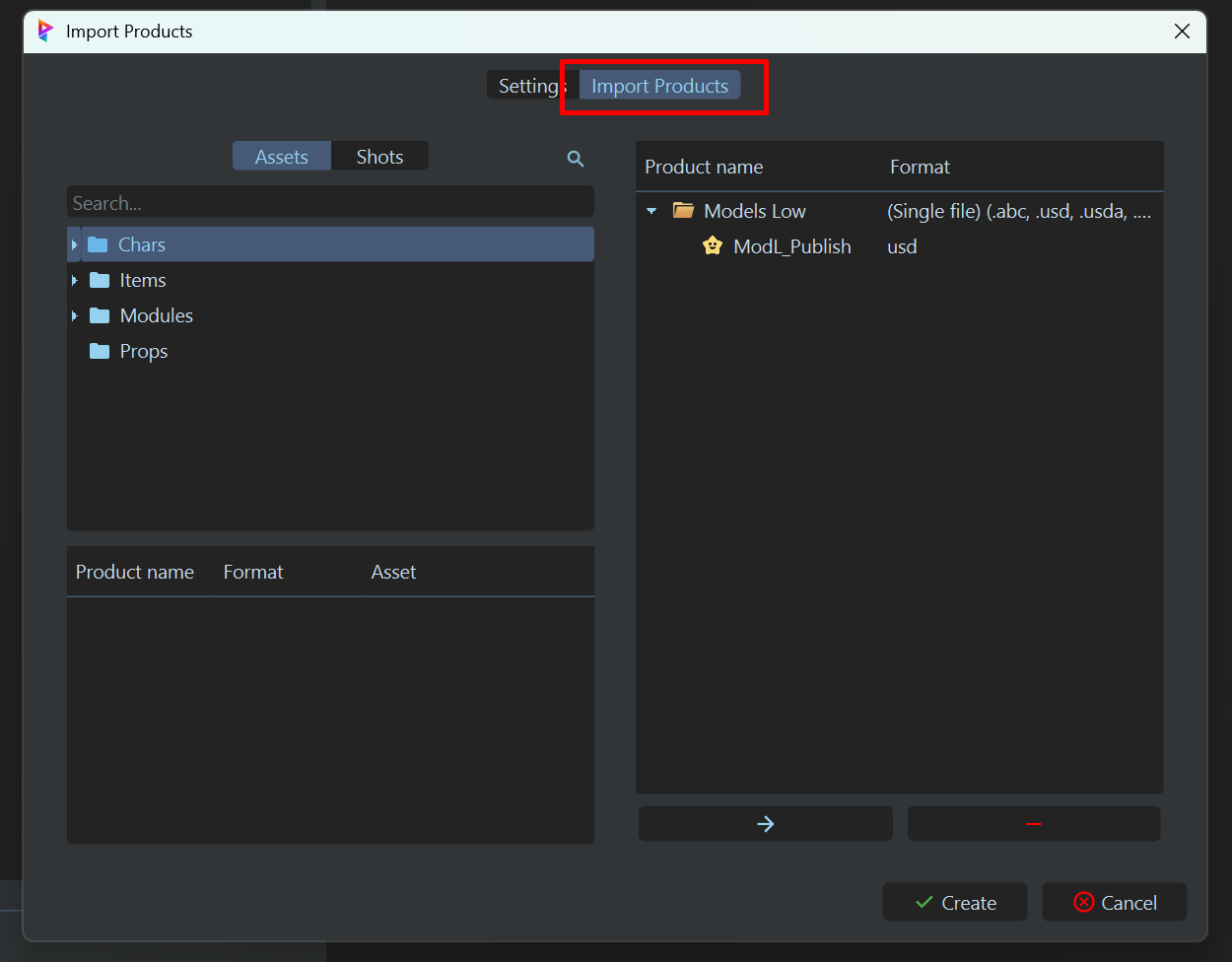 ". Cette page permet d'affiner les produits qui seront importés dans la scène au cas où l'algorithme passerait à côté de quelque chose. Ici, nous allons importer nos modèles low poly comme base pour nos rigs low (ou modèles high poly pour rigs high). Lisez la documentation pour plus de détails sur cette page.