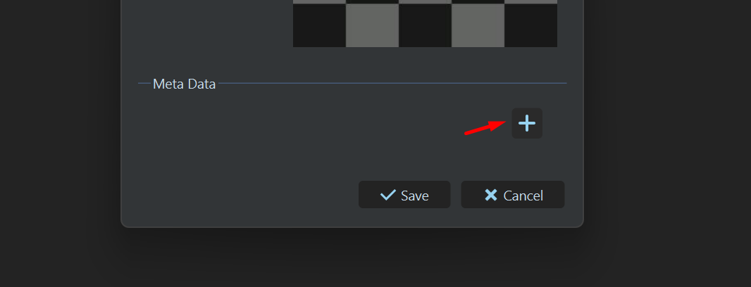 en bas de la fenêtre pour créer des metadonnées personnalisées (Meta Data).